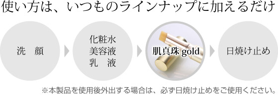 洗顔後、化粧水や乳液でお肌を整えた後、気になる部分に直接、塗布してやさしくなじませて下さい。スティックを長く出しすぎると折れてしまう心配がありますのでご注意下さい。