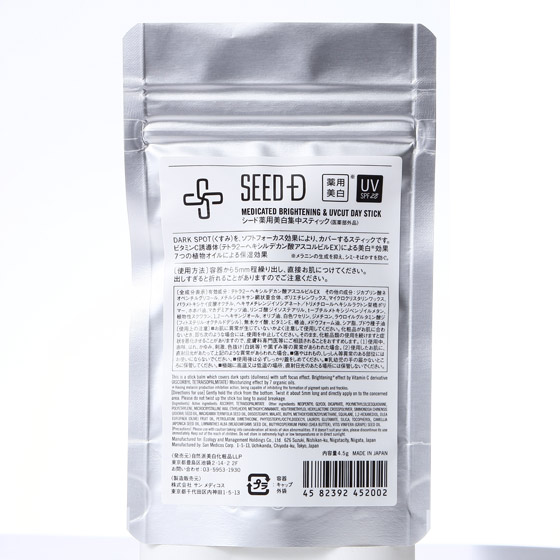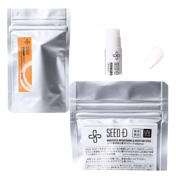 洗顔後にスキンケア(化粧水・乳液等) で整えた後、気になる部分に「シード美白集中スティック」を日焼け止めや化粧下地 としてご使用ください。